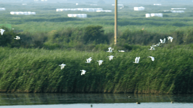 Flock of Birds Flying Over Serene Lake