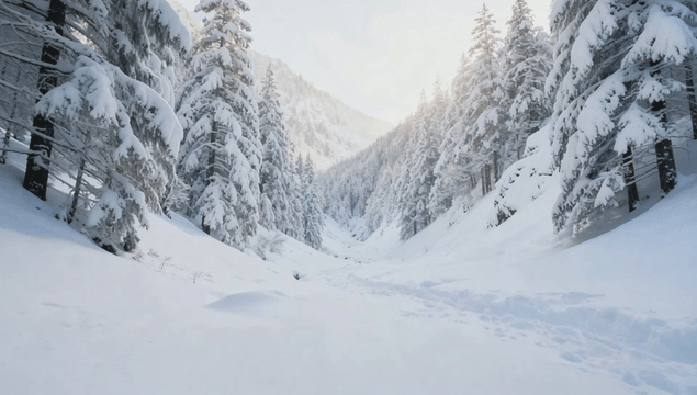 Snow-covered mountains and forests
