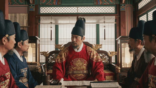Traditional Korean officials in a meeting