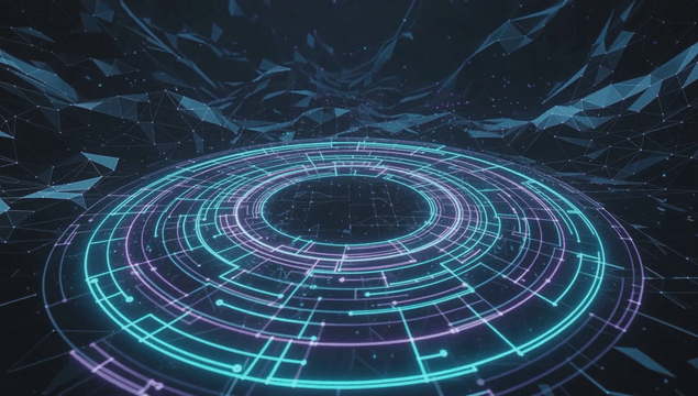 Futuristic digital interface with neon rings