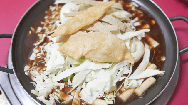 Fried Dumplings Dipped in Tteokbokki Sauce