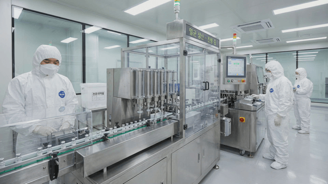 Close-up of a pharmaceutical production line in a factory