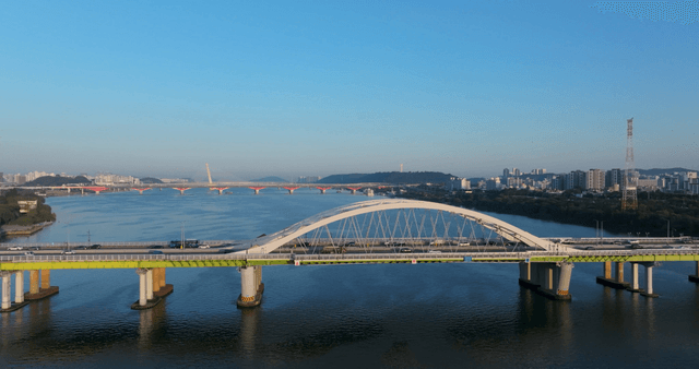 Sunlit Bridge Over Hangang River with Urban Skyline
