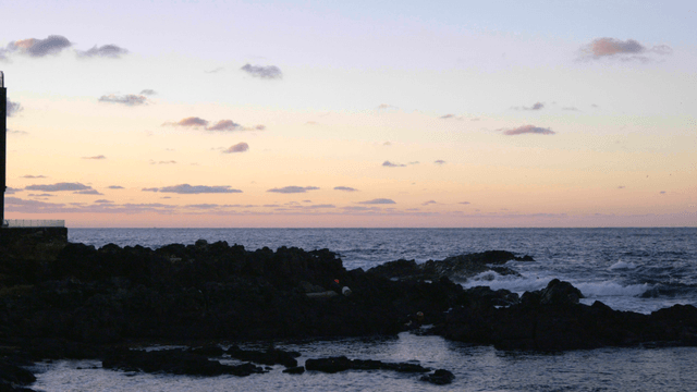 Sunset over a rocky coastline
