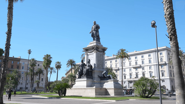 A historic statue in a sunny plaza