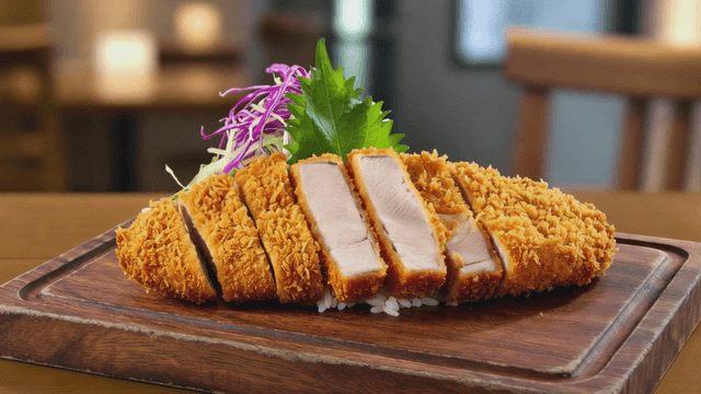 Crispy tonkatsu with cabbage on a board