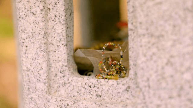 Elder holding prayer bead bracelet
