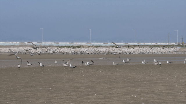 Various Birds and Crested Terns on the Tidal Mudflat