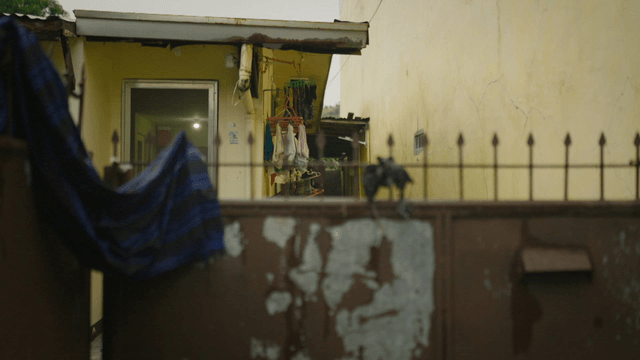 Woman entering a dimly lit house
