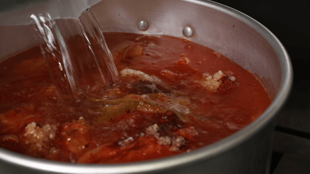 Kimchi stew filling pot