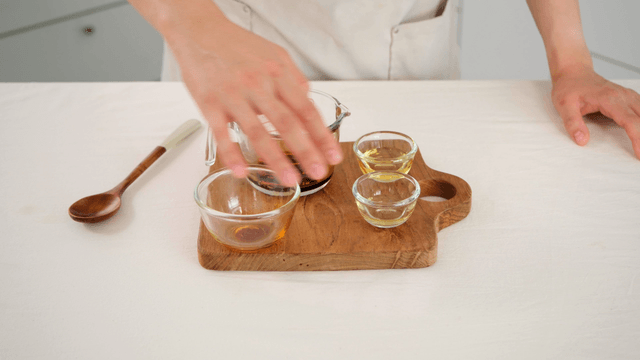 Mixing soy sauce in measuring cup