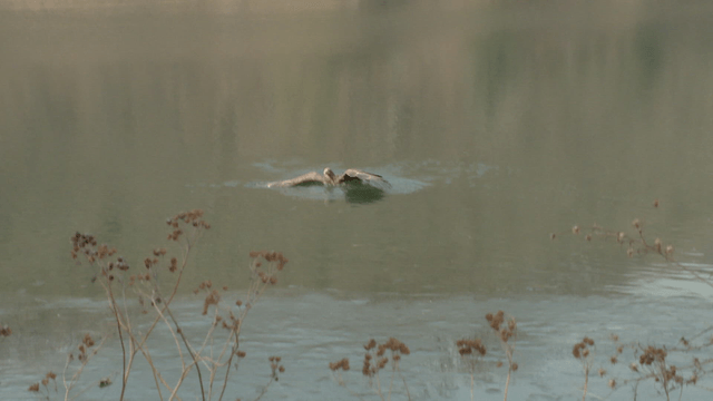 White-tailed eagle training to hunt in indoor pool