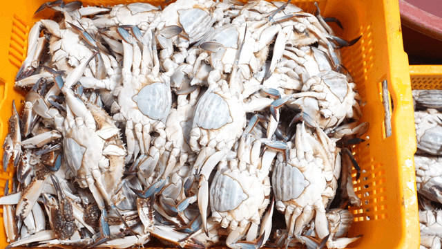 Fresh Crabs in a Container at Market