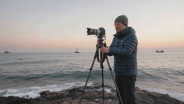 Photographer capturing the ocean at dawn
