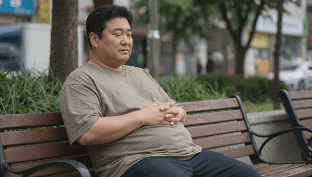 Fat white woman sitting on comfortable chair with her stomach exposed