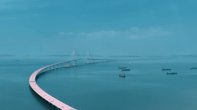 Long bridge stretching over sea
