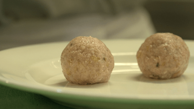 Chef preparing meatballs in a kitchen