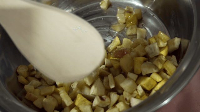 Mixing of thick white batter in a large bowl using wooden spatulas