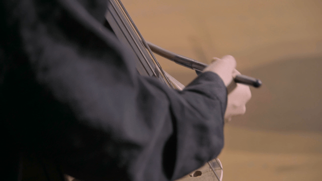 Musician playing the cello in dim light
