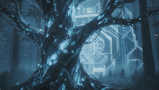 Glowing Bulb of Fairy Lights in a Dark Setting at Night