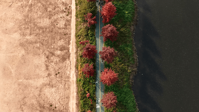 Riverside road where countless people are running