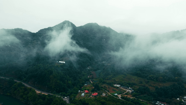 Misty mountains with lush green forests