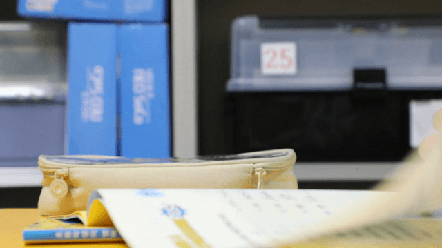 Student studying in a classroom