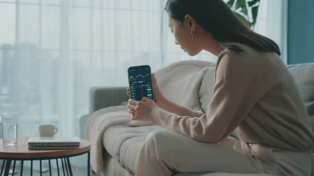 Middle-aged person checking stock chart on phone
