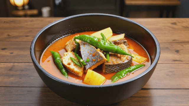 Red and Spicy Mackerel Stew Boiling in a Pot