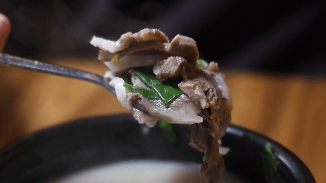 Korean beef soup filled with meat in spoon
