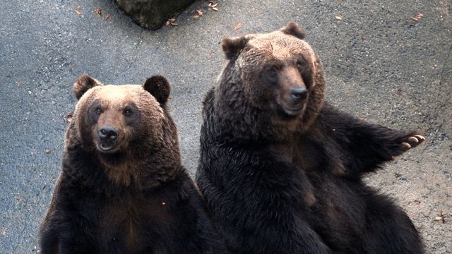 Brown bear looking around on rock
