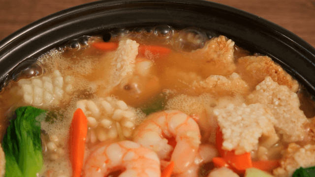 Shrimp and vegetable scorched rice soup