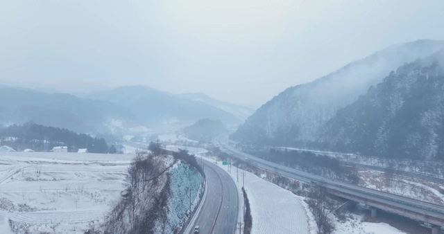 Building and valleys on top of snow-covered mountains under clear blue skies