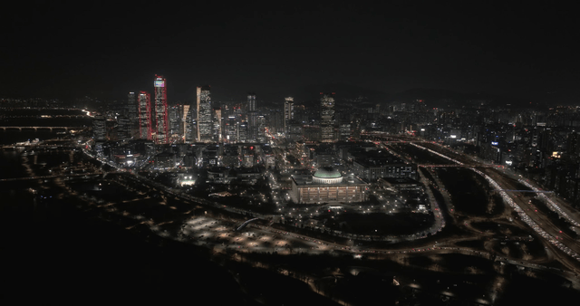 Aerial Shot of the Night View Around Yeouido