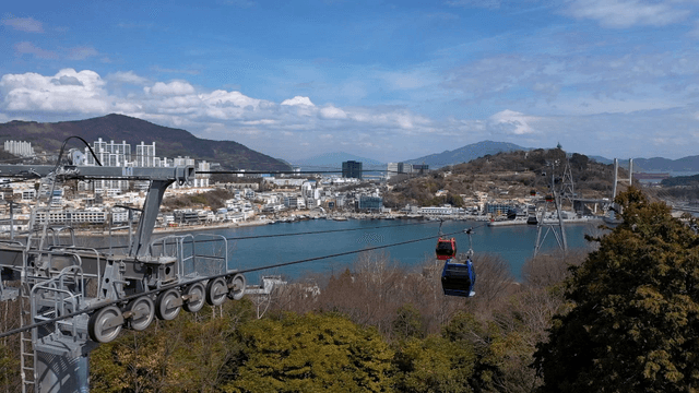 Coastal city with cable cars and greenery