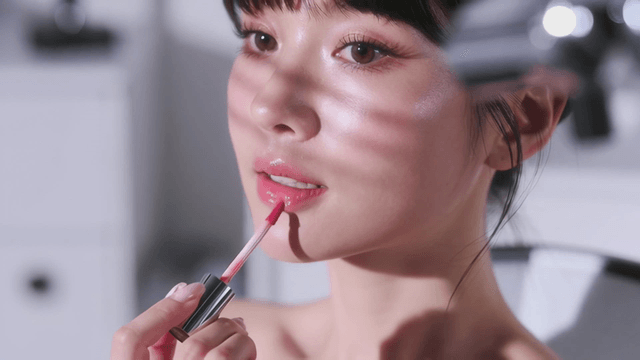 Applying red tint to lips with applicator