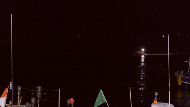 A fishing boat sailing at night