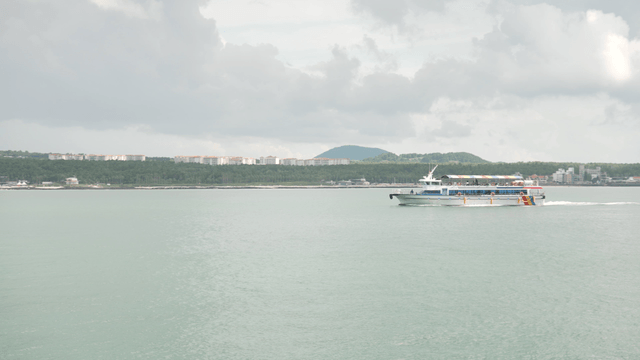 Ferry Going Forward to the Blue Sea Near the Island