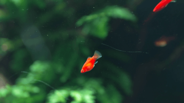 Small red fish swimming in aquarium
