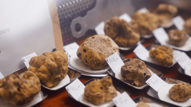 Truffles displayed with price tags