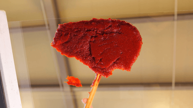 Mixing Thick, Red Chilli Pepper Paste in Ceramic Pot