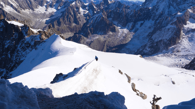 Climber Ascending a Snowy Mountain Slope