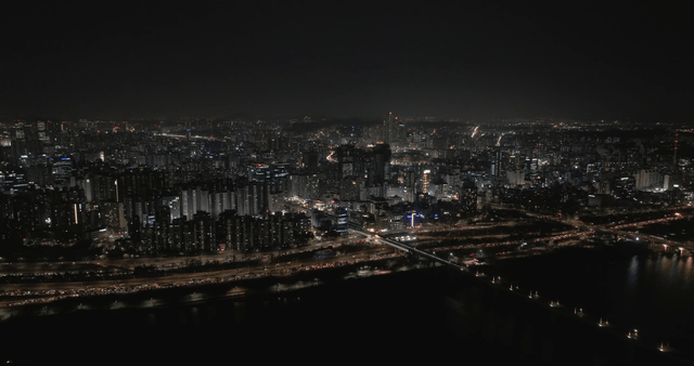 Aerial Shot of the Night View Around Yeouido