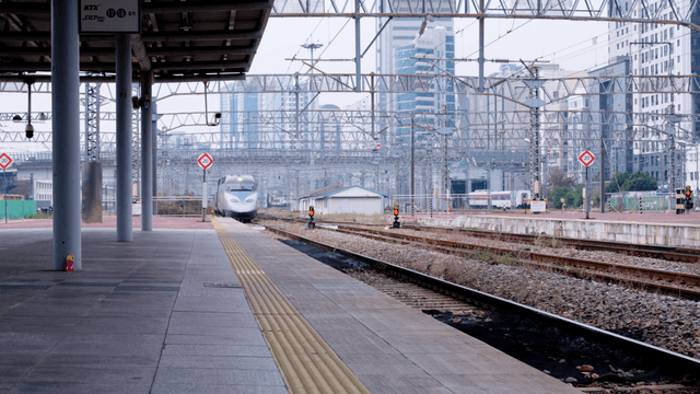 View of the Station from the Window Inside the Train