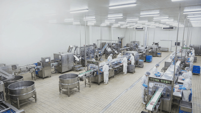 Workers in a food factory processing dumplings