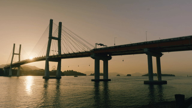 Bridge over the golden sea at sunset