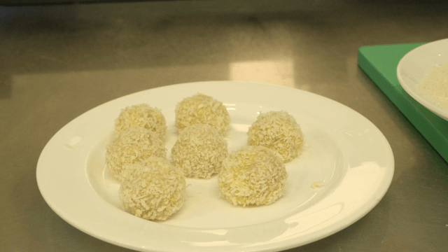 Frying bread in hot oil in a pan in a restaurant kitchen