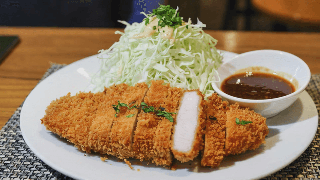 Crispy cheese pork cutlet with spicy sauce with bean sprouts