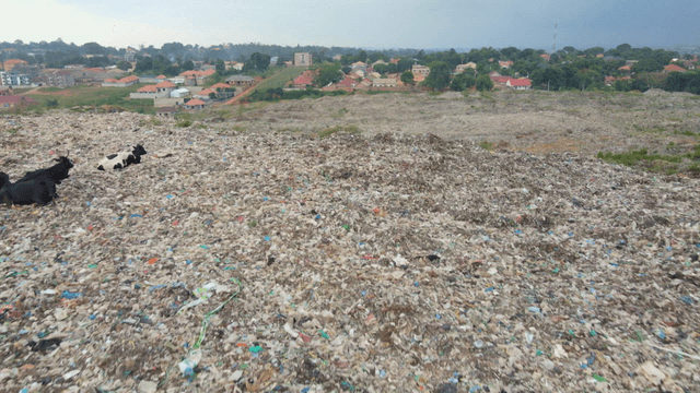 Massive landfill filled with various types of plastic waste