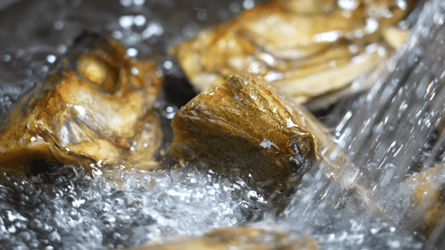 Scene of pouring water into a pot containing dried anchovies